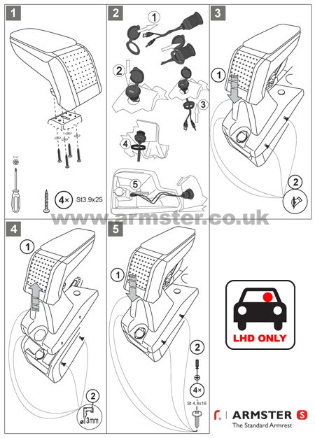 Each Armster is vehicle specific and supplied with its own mounting adapter, screws, and full fitting instructions, ensuring it will fit perfectly and securely to the Ford Transit Connect Van MK2 Pre-facelift (Left Hand Drive Only) centre console unlike the cheaper aftermarket universal armrests. All Armster models have a long 3 year warranty, manufactured to OEM standards and made in the EU, making it the most successful aftermarket armrest system in Europe.