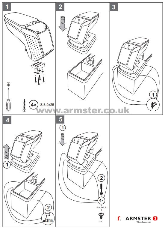 Each Armster is vehicle specific and supplied with its own mounting adapter, screws, and full fitting instructions, ensuring it will fit perfectly and securely to the Caddy centre console unlike the cheaper aftermarket universal armrests. All Armster models have a long 3 year warranty, manufactured to OEM standards and made in the EU, making it the most successful aftermarket armrest system in Europe.